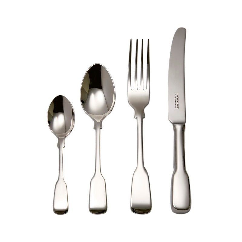 A timeless choice beloved in English households for generations, Fiddle stainless steel cutlery effortlessly blends classic form with contemporary elegance. Whether gracing formal occasions or elevating everyday meals, its sleek design complements any tableware, bringing something special to any dining occasion.