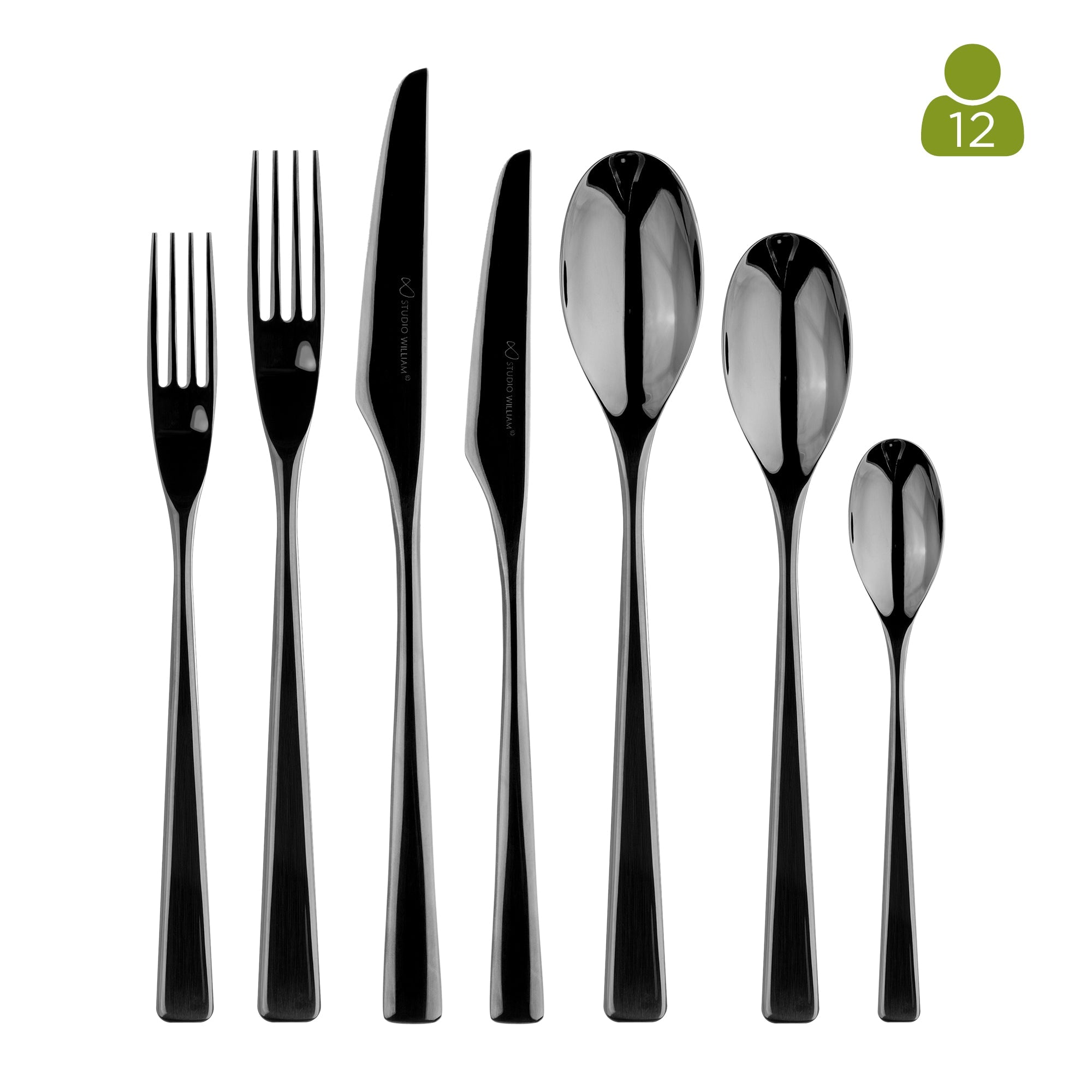 The black PVD titanium coating elevates this collection beyond the ordinary. This advanced finish offers exceptional scratch and tarnish resistance, ensuring each knife, fork and spoon retains its deep, mirror-black lustre for years to come. Underneath, 18/10 stainless steel provides durability, weight and corrosion resistance — the hallmark of Studio William quality.