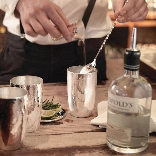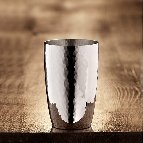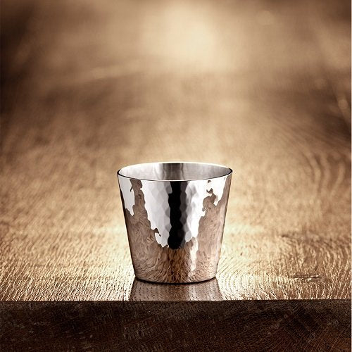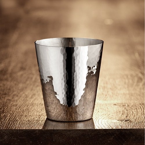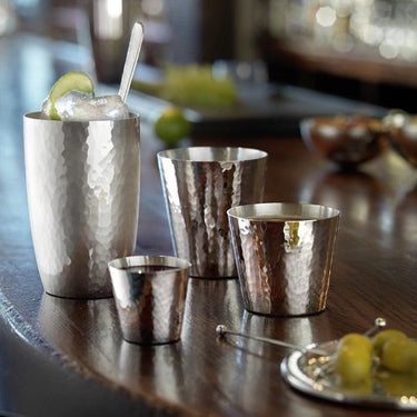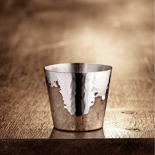 Each of the tumblers is plated with 36 microns of silver (90g silver plate) and hammer-finished by hand.