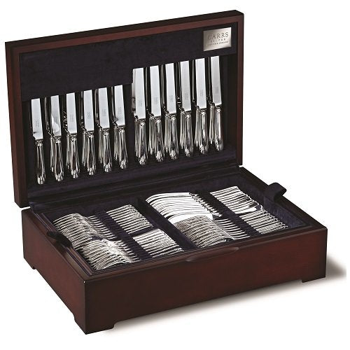 THE CHELSEA CABINET - the best seller from Carrs Cutlery Canteen Collection, designed to hold up to 124 pieces of cutlery. As standard it comes with a mahogany finish, is hand lined in cotton velvet and individually racked with a removable tray.