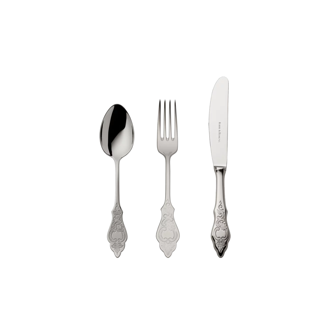 For over a century, Ostfriesen has epitomised the essence of traditionally-styled cutlery, meticulously crafted with precision by Robbe & Berking. Combining timeless elegance with meticulous attention to detail, this collection has been a staple in silver, silver plate and stainless steel. Its charming shape and engraved handles make it the ideal addition to any traditional table setting, whatever the occasion.