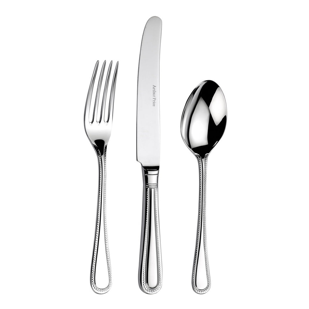 Introduce a touch of elegance to your table with Arthur Price's Bead Stainless Steel Cutlery. Inspired by the timeless beauty of pearls, this classic design dates back to 1793 and is believed to have been crafted initially by renowned silversmith Hester Bateman.