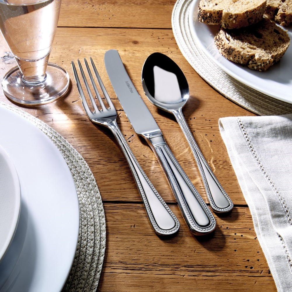 Introduce a touch of elegance to your table with Arthur Price's Bead Stainless Steel Cutlery. Inspired by the timeless beauty of pearls, this classic design dates back to 1793 and is believed to have been crafted initially by renowned silversmith Hester Bateman.