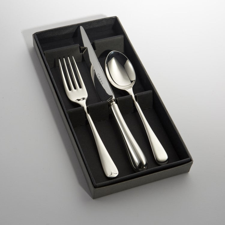 This traditional children's cutlery set consisting of a knife, fork and spoon with much smaller proportions than the full-size version is the ideal present for a birthday or Christening.