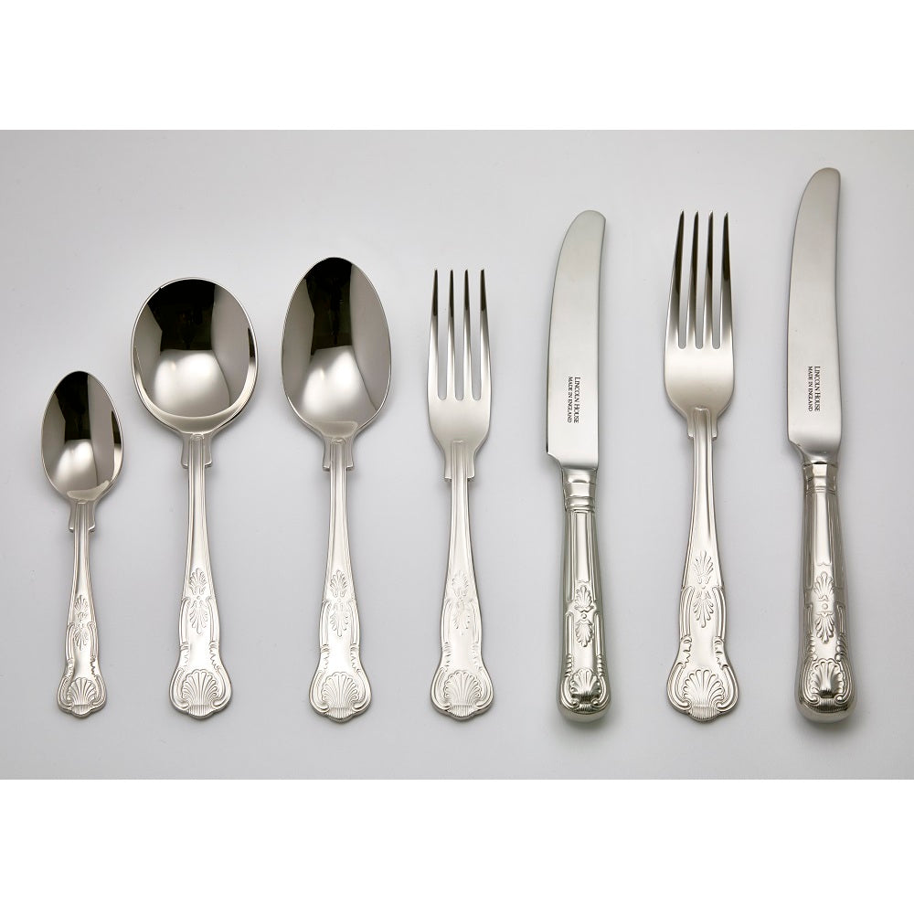 Experience the opulence of Kings, a masterpiece in cutlery designed by the silversmithing brothers John & Henry Lias for King George III. This highly successful design boasts a regal charm suitable for both traditional formal occasions and everyday use.