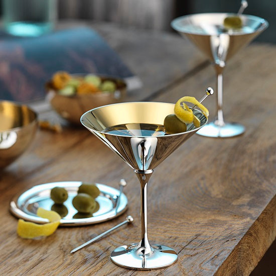 The cocktail coupes are available in silver plate (36 microns / 90g silver plating); or with a gold inside.