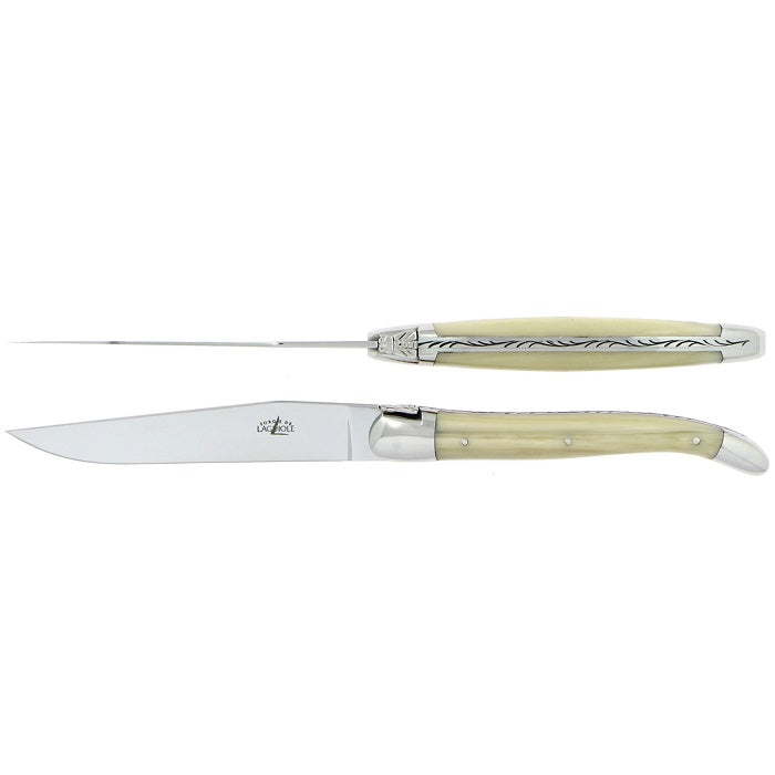 Forge de Laguiole LIGHT ACRYLIC Handle Steak Knives, high polished finish - set of 2