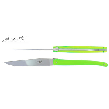From architecture to Laguiole knife... After graduating from Camondo School of Design, Jean-Michel Wilmotte founded the Wilmotte & Associés agency in Paris. During his illustrious career he created, decorated and designed numerous famous and prestigious buildings around the world, from museums to universities to airports, to mention a few. Jean-Michel Wilmotte created one of the most iconic Forge de Laguiole Signature collection: an explosive line of decorative knives, with handles in multi-coloured acrylic glass.