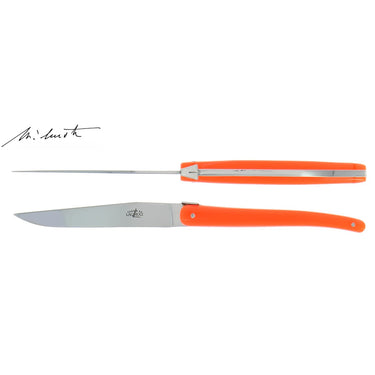 From architecture to Laguiole knife... After graduating from Camondo School of Design, Jean-Michel Wilmotte founded the Wilmotte & Associés agency in Paris. During his illustrious career he created, decorated and designed numerous famous and prestigious buildings around the world, from museums to universities to airports, to mention a few. Jean-Michel Wilmotte created one of the most iconic Forge de Laguiole Signature collection: an explosive line of decorative knives, with handles in multi-coloured acrylic glass.