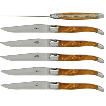 Forge de Laguiole OLIVEWOOD Handle Steak knives, satin finish - set of 6