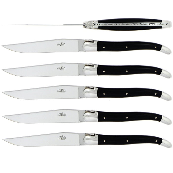 Forge de Laguiole BLACK ACRYLIC Handle Steak Knives, high polished finish - set of 6