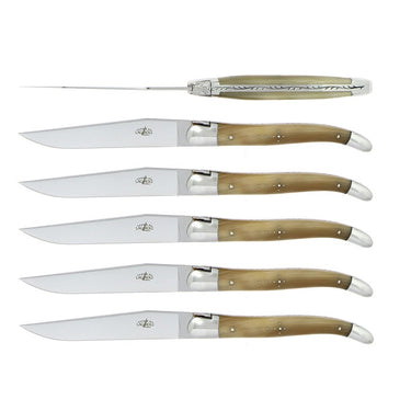 Forge de Laguiole LIGHT HORN Handle Steak Knives, high polished finish - set of 6