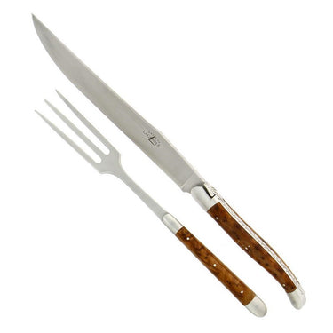 The question of the supremacy of function and shape has been optimally solved in this extraordinary carving set, comprising carving knife and carving fork - with handles made from Thuya wood.