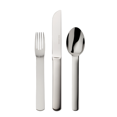 Inspired by the renowned Bauhaus style, Topos brings a sense of clarity and aesthetic beauty to your table. As all stainless steel cutlery sets from Robbe & Berking, Topos is crafted from high-quality stainless steel and offers enduring strength and timeless appeal.
