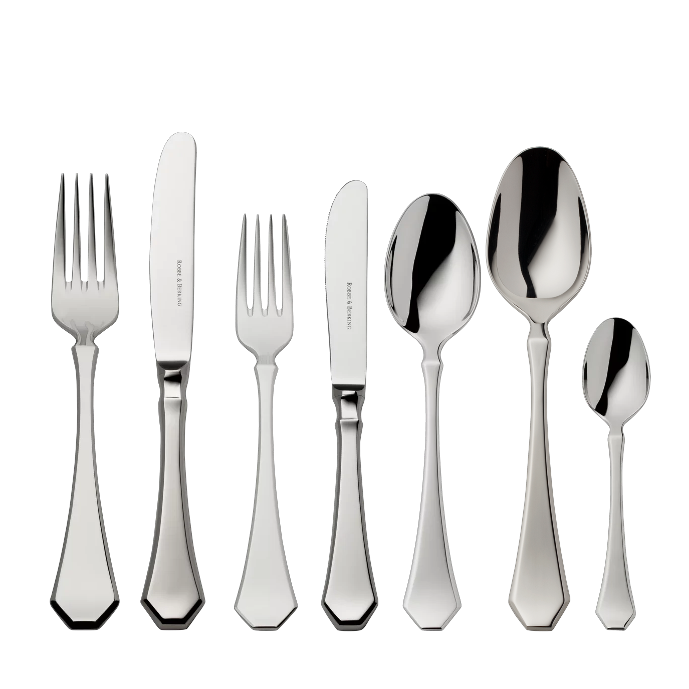 Embrace the fresh and brilliant design of Baltic Polished Stainless Steel cutlery from Robbe & Berking. Its clean bevels define the handles, lending a touch of elegance and ensuring this striking set stands out for all the right reasons, whether your table setting is contemporary or traditional.