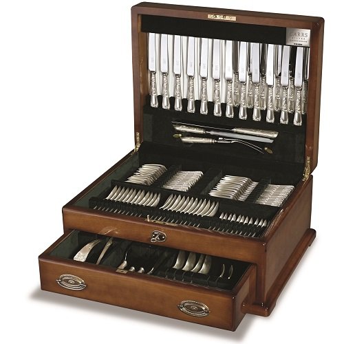 THE CENTURION CABINET - from Carrs Cutlery Canteen Collection, designed to hold 100 pieces of cutlery. It is individually racked with a single drawer & locking feature, hand lined in cotton velvet.