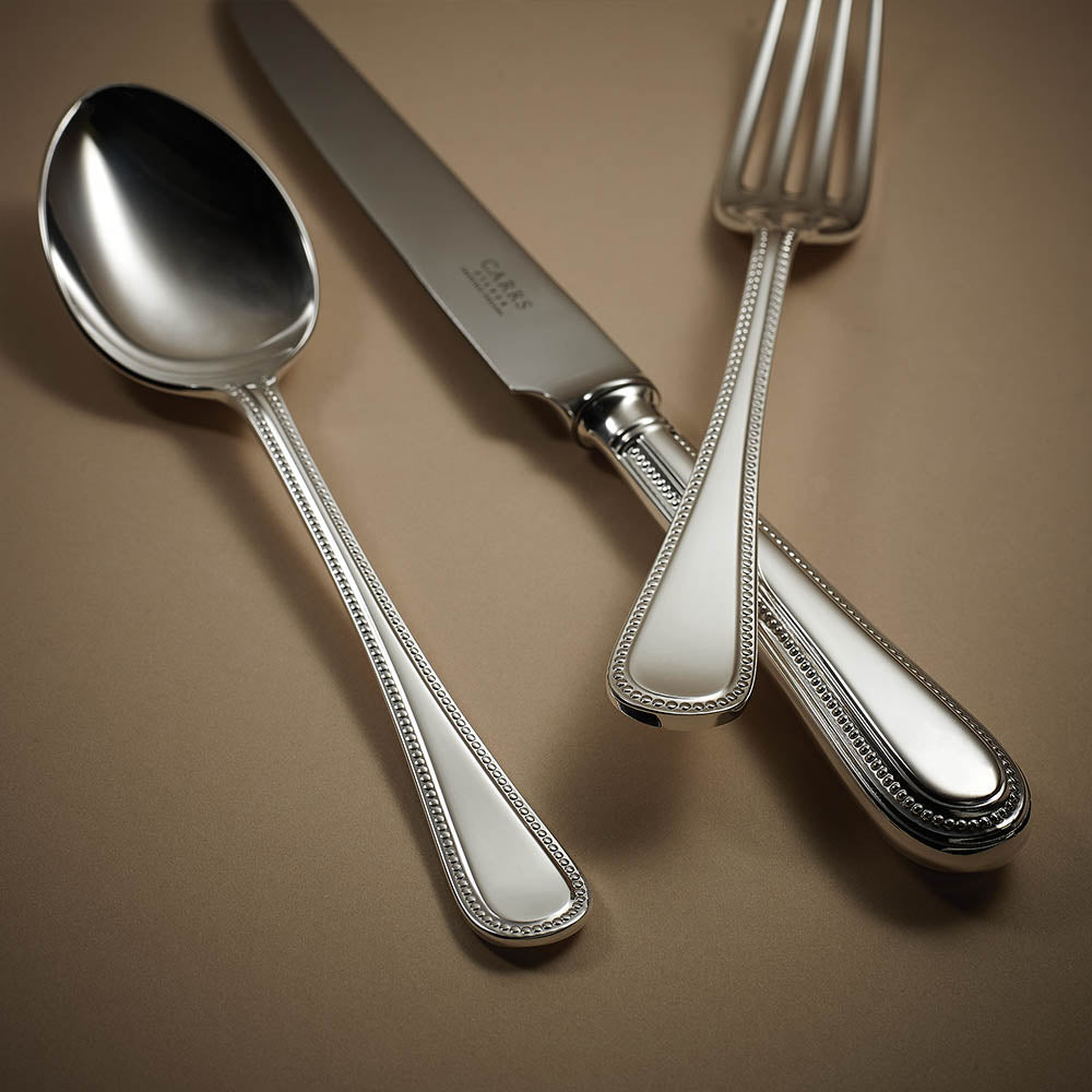 Indulge in the luxurious elegance of Carrs Silver Plated cutlery in the popular Bead pattern, a tribute to the timeless splendour of pearls - a currency cherished in the eighteenth century.