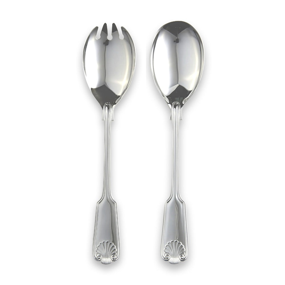 Carrs Fiddle Thread & Shell Sterling Silver Salad servers pair