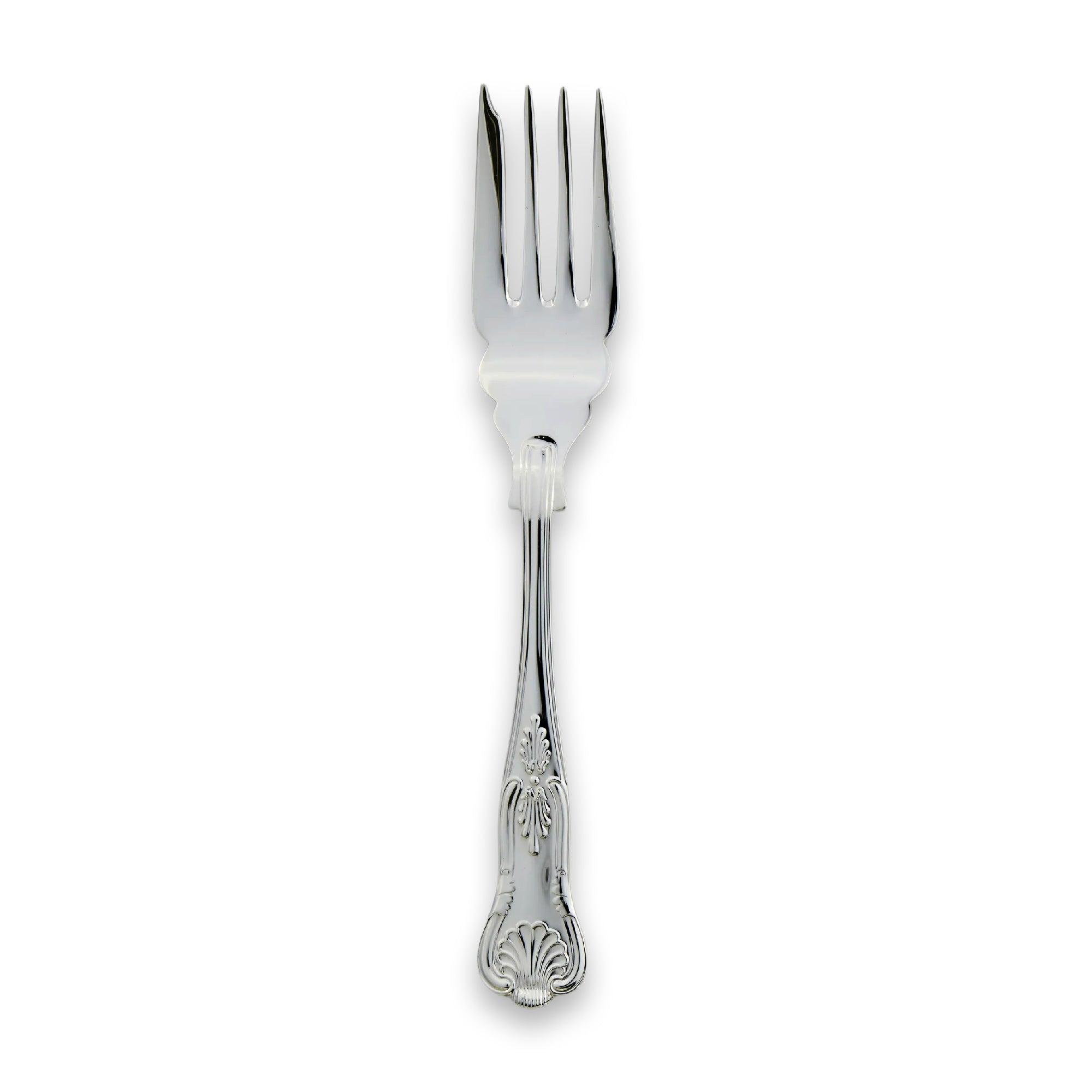 Discover the luxurious and richly-designed Kings cutlery pattern, perfect for formal occasions and opulent banquets. This extravagant shells and honeysuckle design originated in the early 1800s and is attributed to the renowned silversmith brothers John and Henry Lias.