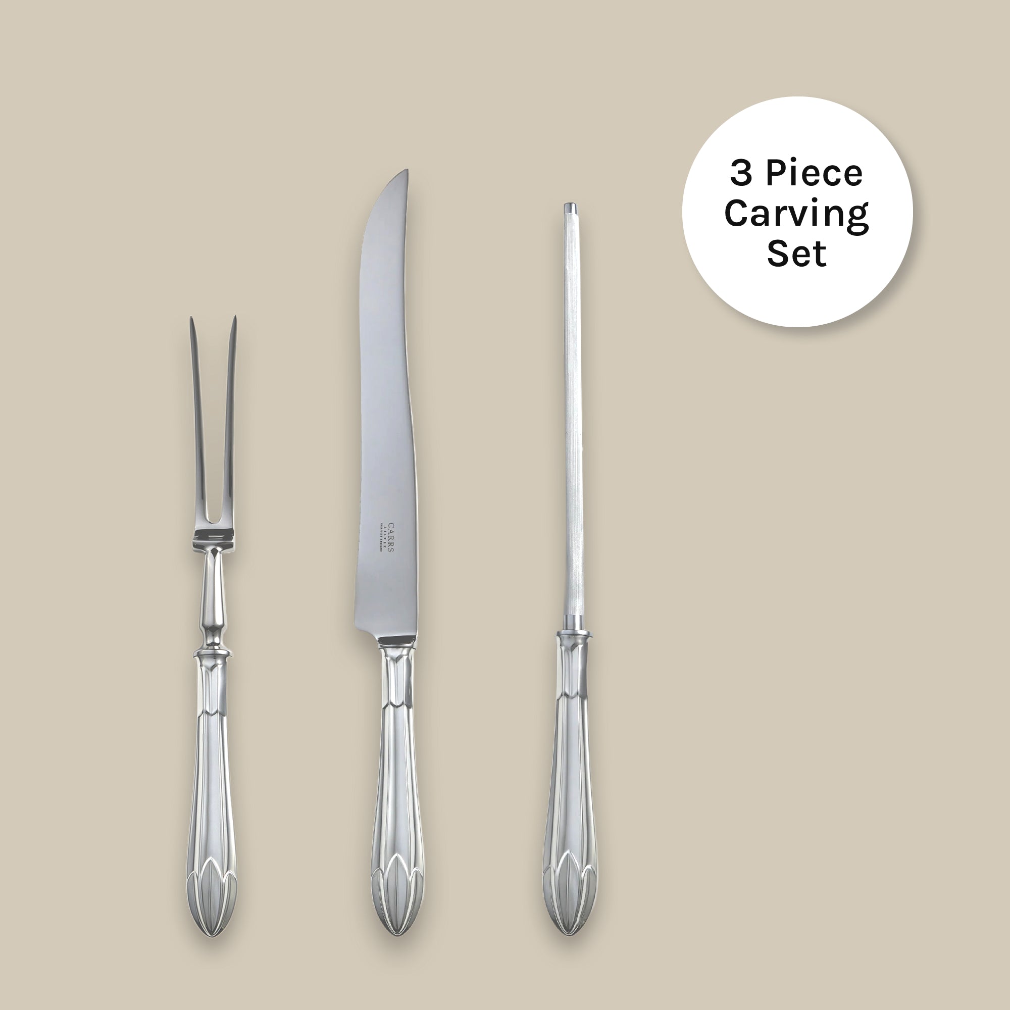 Carrs Lotus Flower Silver Plate 3-Piece Carving Set
