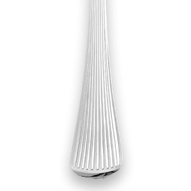 Featuring fine threaded lines down the handles, culminating in a flared base, this pattern evokes the Art Deco era. Versatile and adaptable cutlery for any occasion, formal or casual.