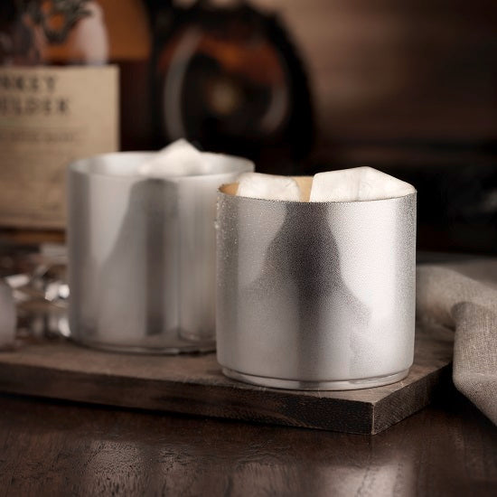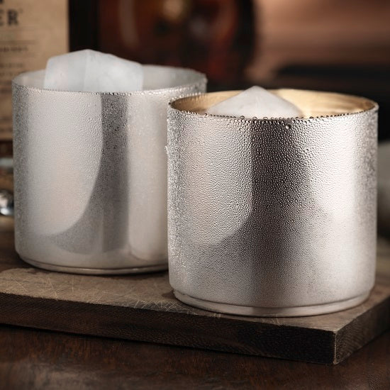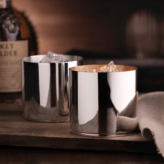 The whisky tumblers are available in silver plate (36 microns / 90g silver plating); or with a gold inside.
