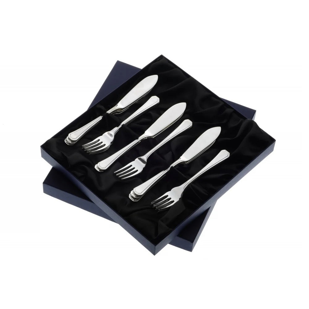 Grecian Sovereign Silver Plate Fish blade and fish fork, set of 6 pairs, gift boxed