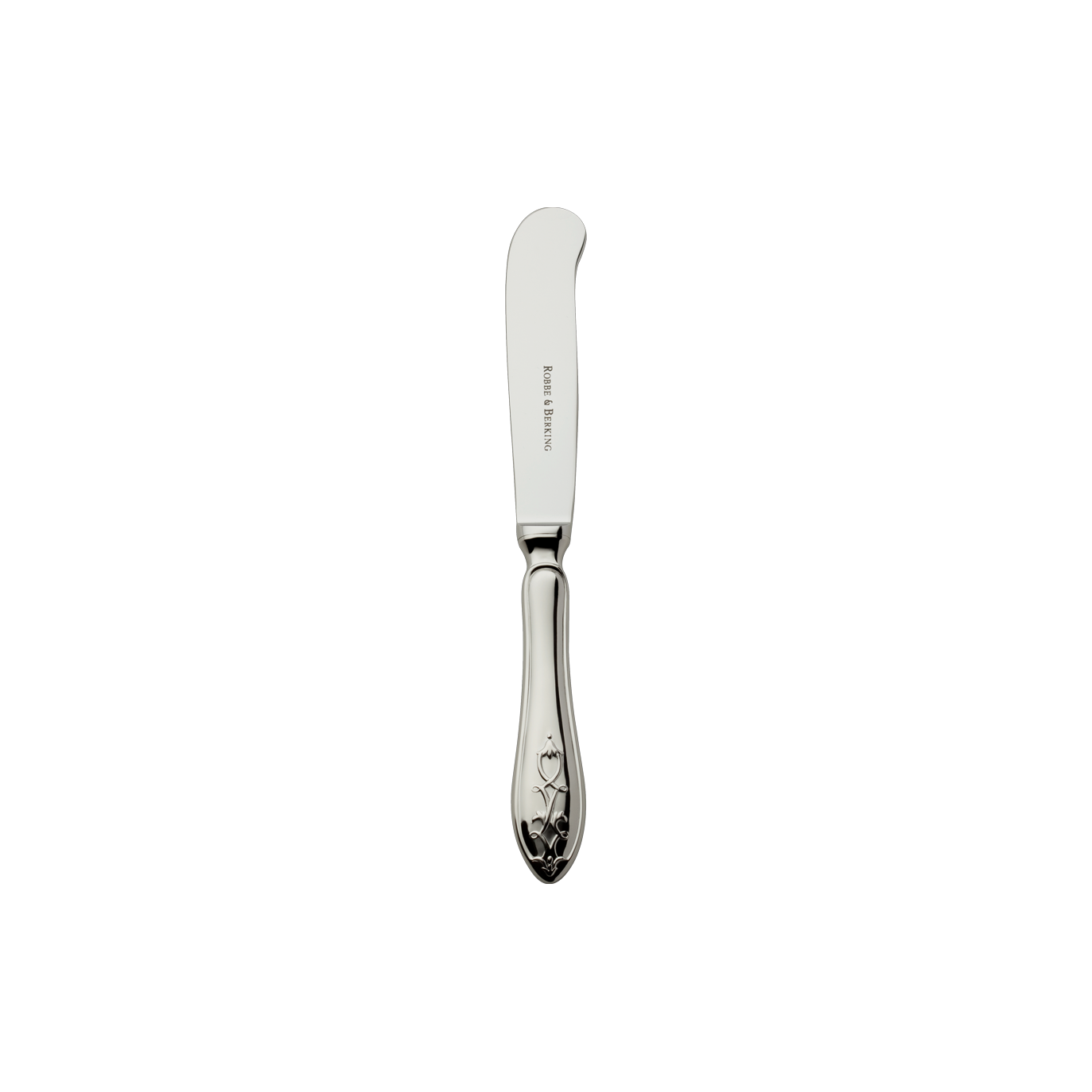 Delight in the captivating charm of Jardin stainless steel cutlery, featuring gracefully curved lily-shaped handles adorned with intricate floral motifs. Designed for Robbe & Berking by the visionary Robert Berking, this collection harmoniously merges elegance and nature, creating a captivating aesthetic.