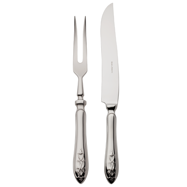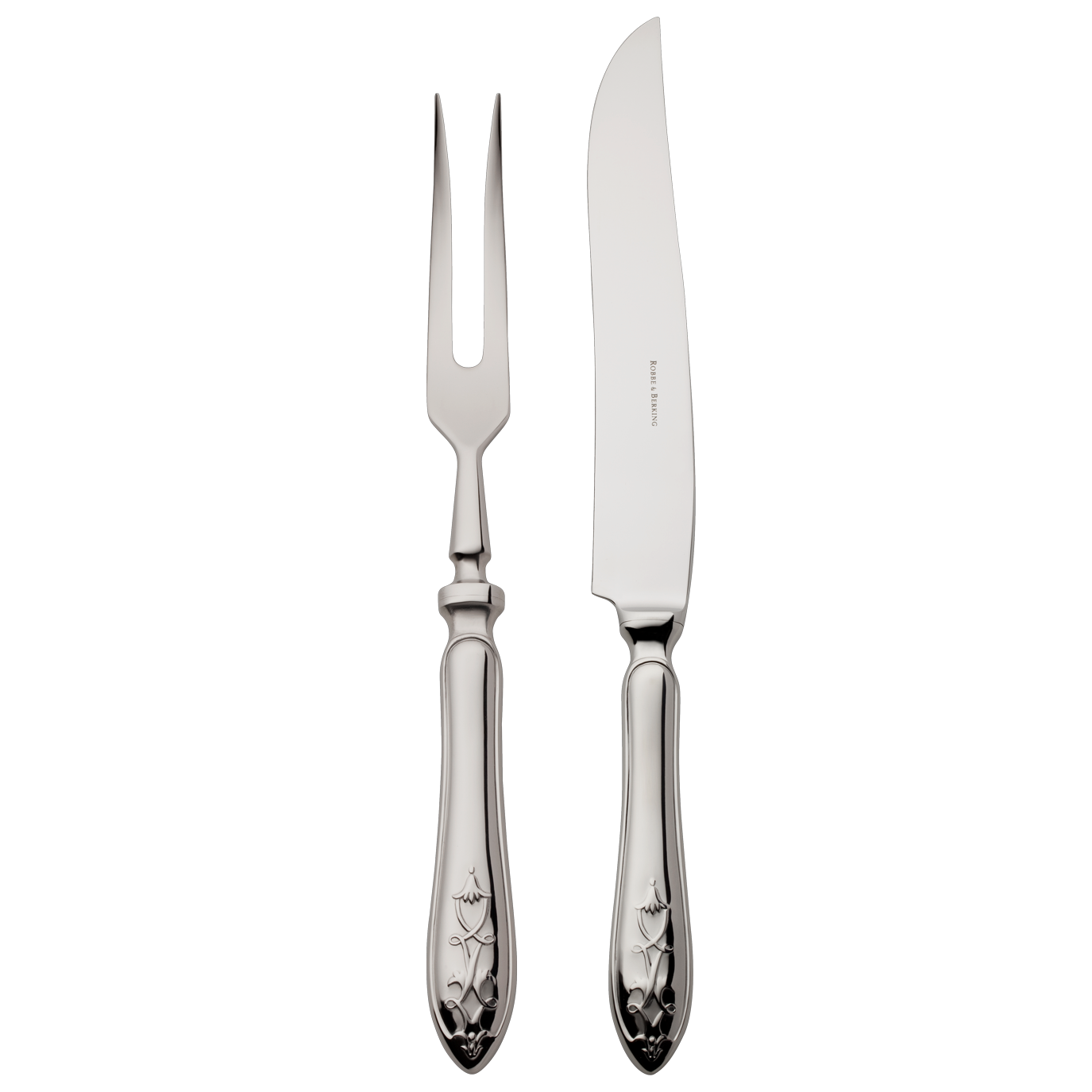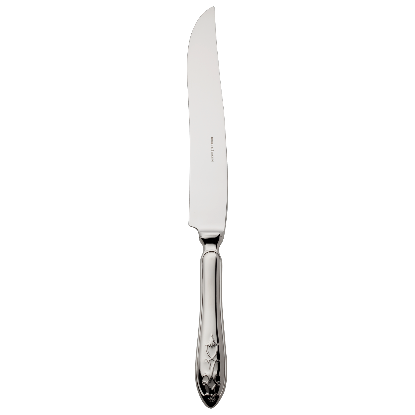 Delight in the captivating charm of Jardin stainless steel cutlery, featuring gracefully curved lily-shaped handles adorned with intricate floral motifs. Designed for Robbe & Berking by the visionary Robert Berking, this collection harmoniously merges elegance and nature, creating a captivating aesthetic.