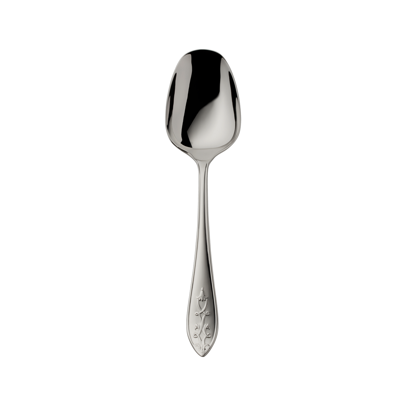 Delight in the captivating charm of Jardin stainless steel cutlery, featuring gracefully curved lily-shaped handles adorned with intricate floral motifs. Designed for Robbe & Berking by the visionary Robert Berking, this collection harmoniously merges elegance and nature, creating a captivating aesthetic.