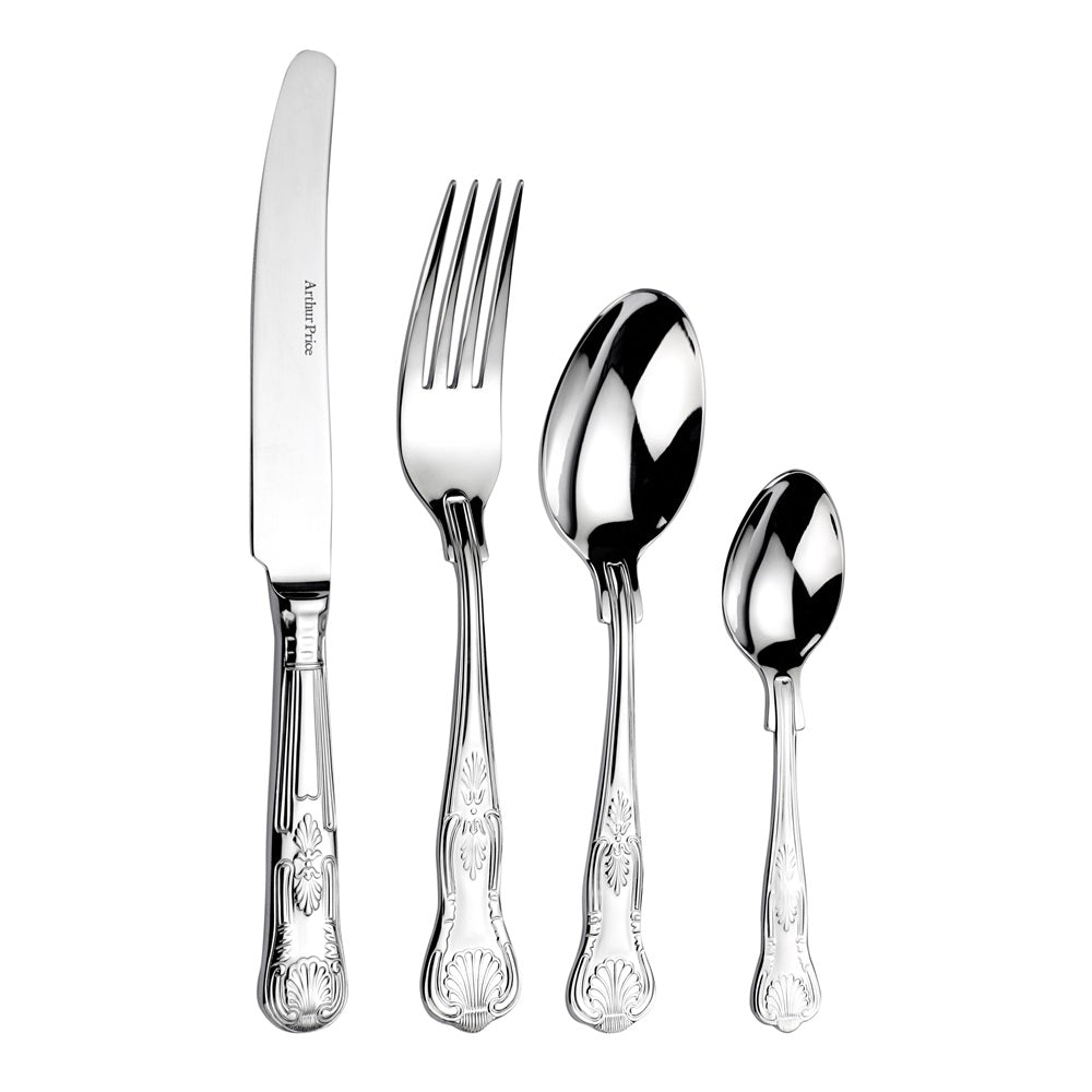 Introducing Kings Everyday Stainless Steel Cutlery by Arthur Price - a classic and elegant pattern inspired by shells and honeysuckle from the early 1800s. This design is attributed to renowned silver-smithing brothers John and Henry Lias and is perfect for any formal occasion.