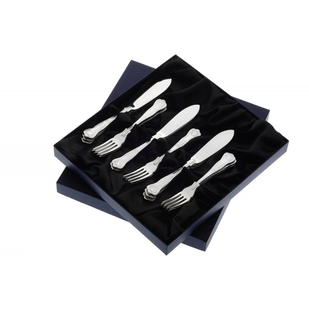 Kings Sovereign Silver Plate Fish blade and fish fork, set of 6 pairs, gift boxed
