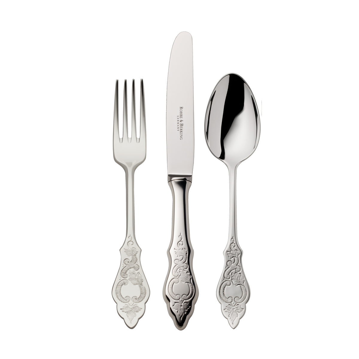 For over a century, Ostfriesen has epitomised the essence of traditionally-styled cutlery, meticulously crafted with precision by Robbe & Berking. Combining timeless elegance with meticulous attention to detail, this collection has been a staple in silver, silver plate and stainless steel. Its charming shape and engraved handles make it the ideal addition to any traditional table setting, whatever the occasion.