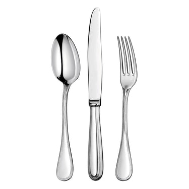 The alignment of beads in halfrelief is typical of Louis XVI ornamentation. This classic and feminine design outlines the contours of the flatware like a pearl necklace.