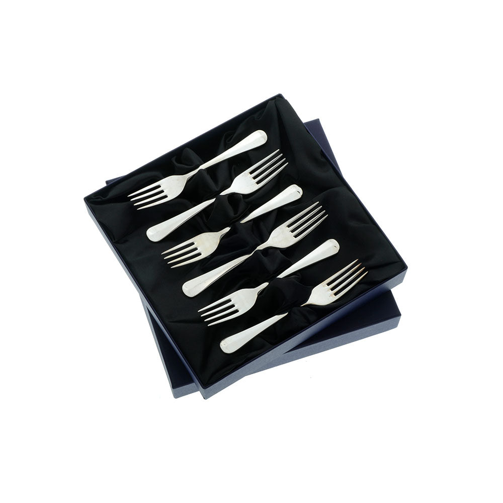 Rattail Sovereign Silver Plate Fruit forks, set of 6, gift boxed
