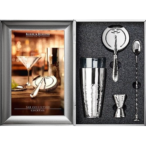 The cocktail shaker with glass from the Robbe & Berking "Martelé" bar collection adds a touch of refinement to the art of cocktail making. With the high-quality bar accessories, mixing cocktails is even more fun.
