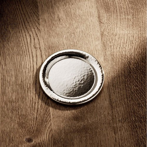 Each coaster is silver plated with 36 microns of silver (90g silver plating) and hammer-finished by hand.