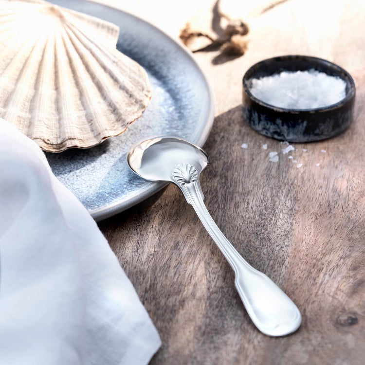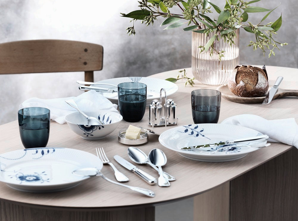 The enduring charm of Alt-Faden cutlery effortlessly blends with both classic and modern table settings. Its generous shape is accentuated by a raised triple thread that elegantly finishes at the tip of the spoon and fork handles, exuding a sense of understated luxury.
