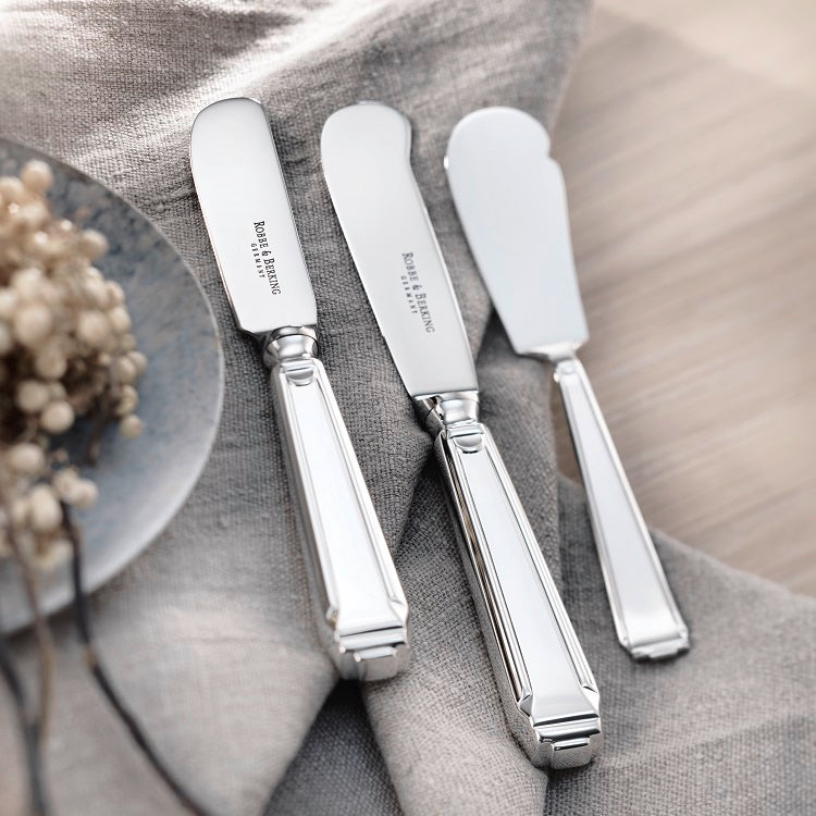 Available as in a wide selection of place-setting sizes or individual pieces, each item is crafted with a 60-micron coating of pure 925 Sterling Silver. Robbe & Berking have guaranteed availability of all patterns in this collection until at least 2040, allowing you the peace of mind to build your set over time.