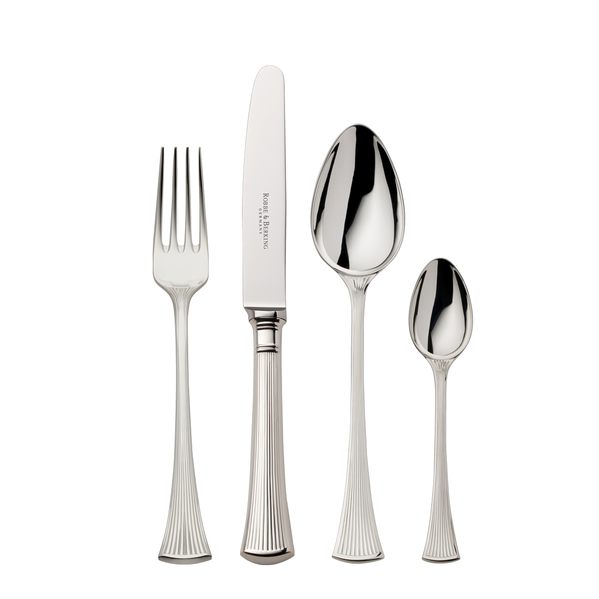Immerse yourself in the luxurious charm of Avenue cutlery from the Robbe & Berking Silver Plated collection. The artfully raised silver ribs create mesmerizing depth and play of light, adding an opulent touch to any dining experience, whether your aesthetic is traditional or contemporary. The gracefully flared handles exude elegance while ensuring a comfortable grip.