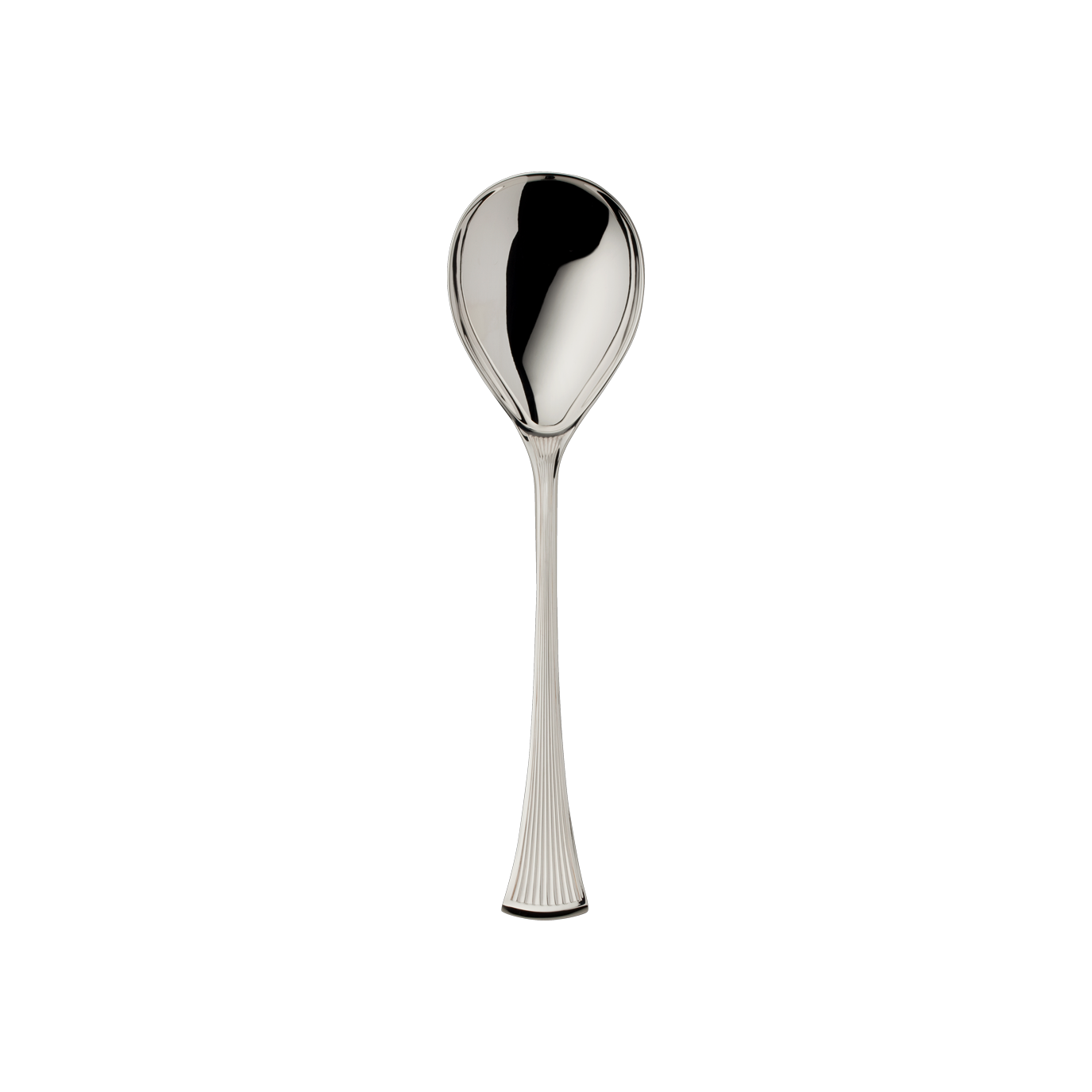 Immerse yourself in the luxurious charm of Avenue cutlery from the Robbe & Berking 925 Sterling Silver collection. The artfully raised silver ribs create mesmerizing depth and play of light, adding an opulent touch to any dining experience, whether your aesthetic is traditional or contemporary. The gracefully flared handles exude elegance while ensuring a comfortable grip.