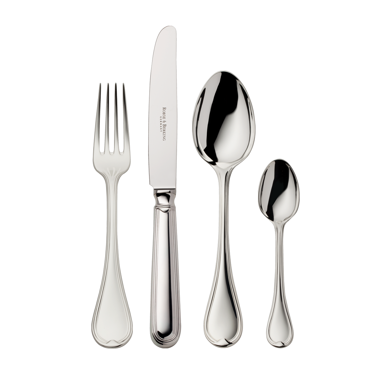 Classic-Faden Silver Plate 4 piece set - 1 x Table knife, table fork, dessert spoon, teaspoon