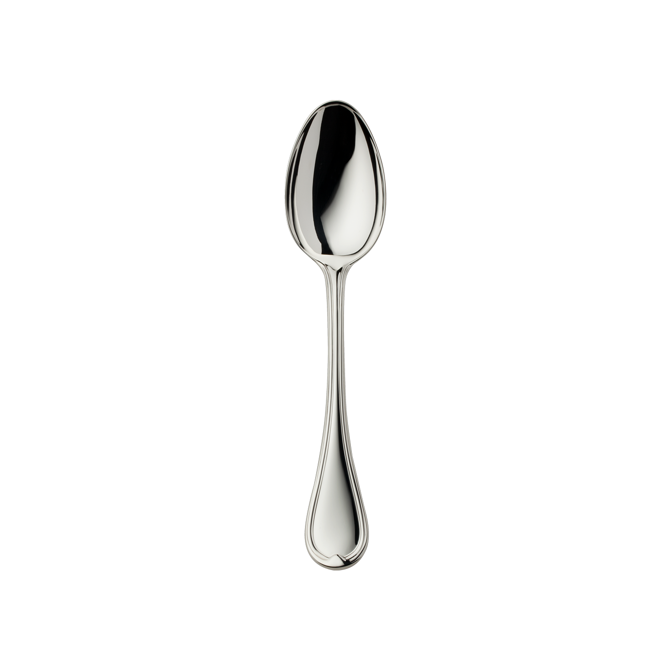 The enduring charm of Classic-Faden cutlery effortlessly blends with both classic and modern table settings. Its generous shape is accentuated by a raised triple thread that elegantly finishes at the tip of the spoon and fork handles, exuding a sense of understated luxury.