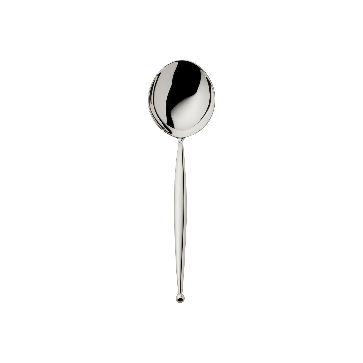 Embrace modern elegance with the Gio silver-plated cutlery set by Robbe & Berking. Its contemporary design showcases gracefully curved handles that culminate in a spherical end, creating a harmonious and visually pleasing aesthetic.