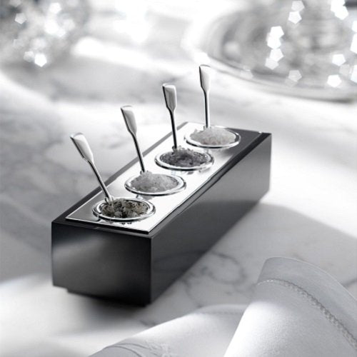 Crafted by the skilled hands of artisans at Robbe & Berking, these sterling silver condiment and salt bars epitomize elegance and refinement. Available in two sizes, these exquisite bars aren't just vessels for salts, sugars, or jams – they're a testament to the artistry of fine dining.